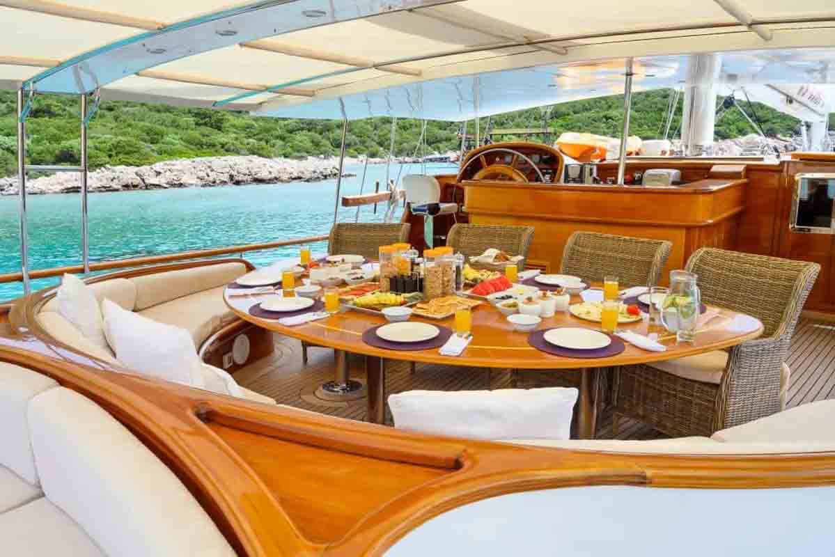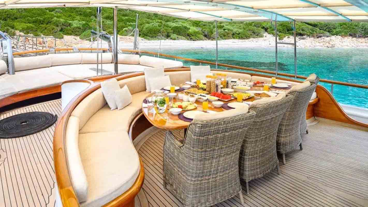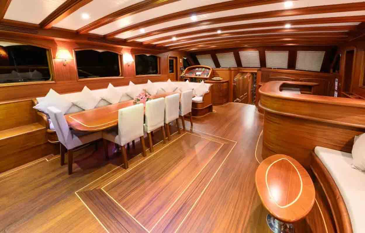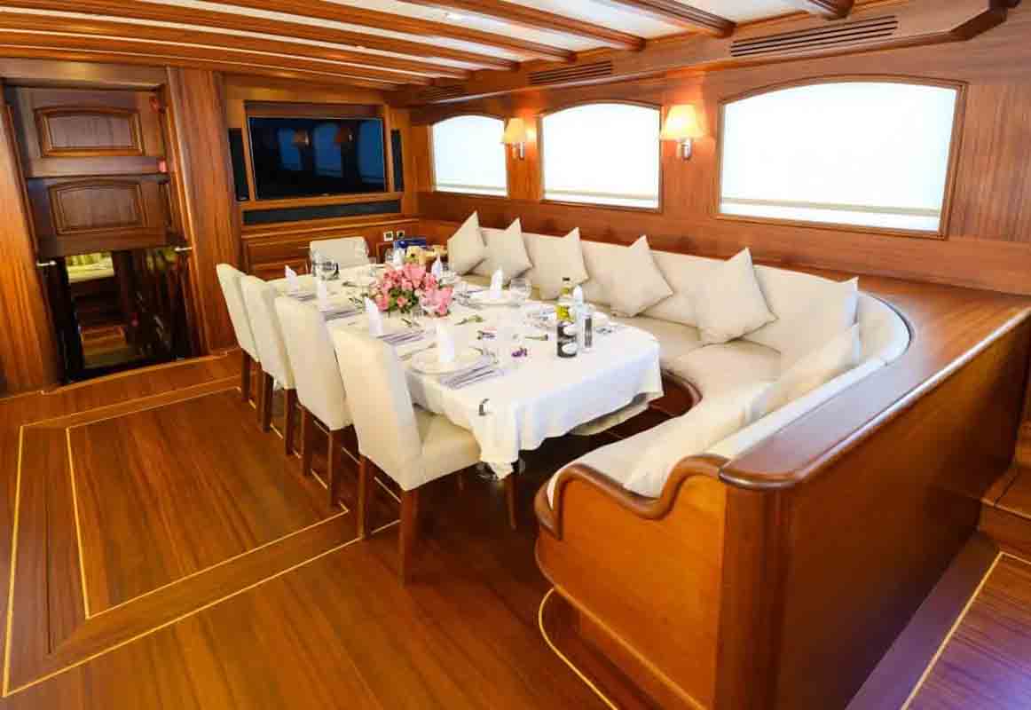 The 36 MT / 118'1" FT High Deluxe Yacht Caner 4 comfortably accommodates 12 guests with her 2 Master, 2 Double, 2 Twin Cabins and is operated by 6 experienced and dedicated crew. Caner4 is available for charter in Turkey and Mediterranean in summer (May to October). Caner4 toys and tenders include Computer, Tv-Set, VCR, DVD-Player, FM-Radio– contact us to know the full list.