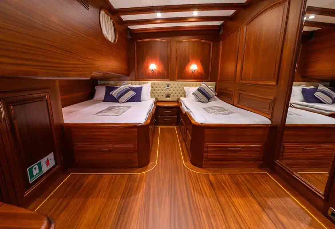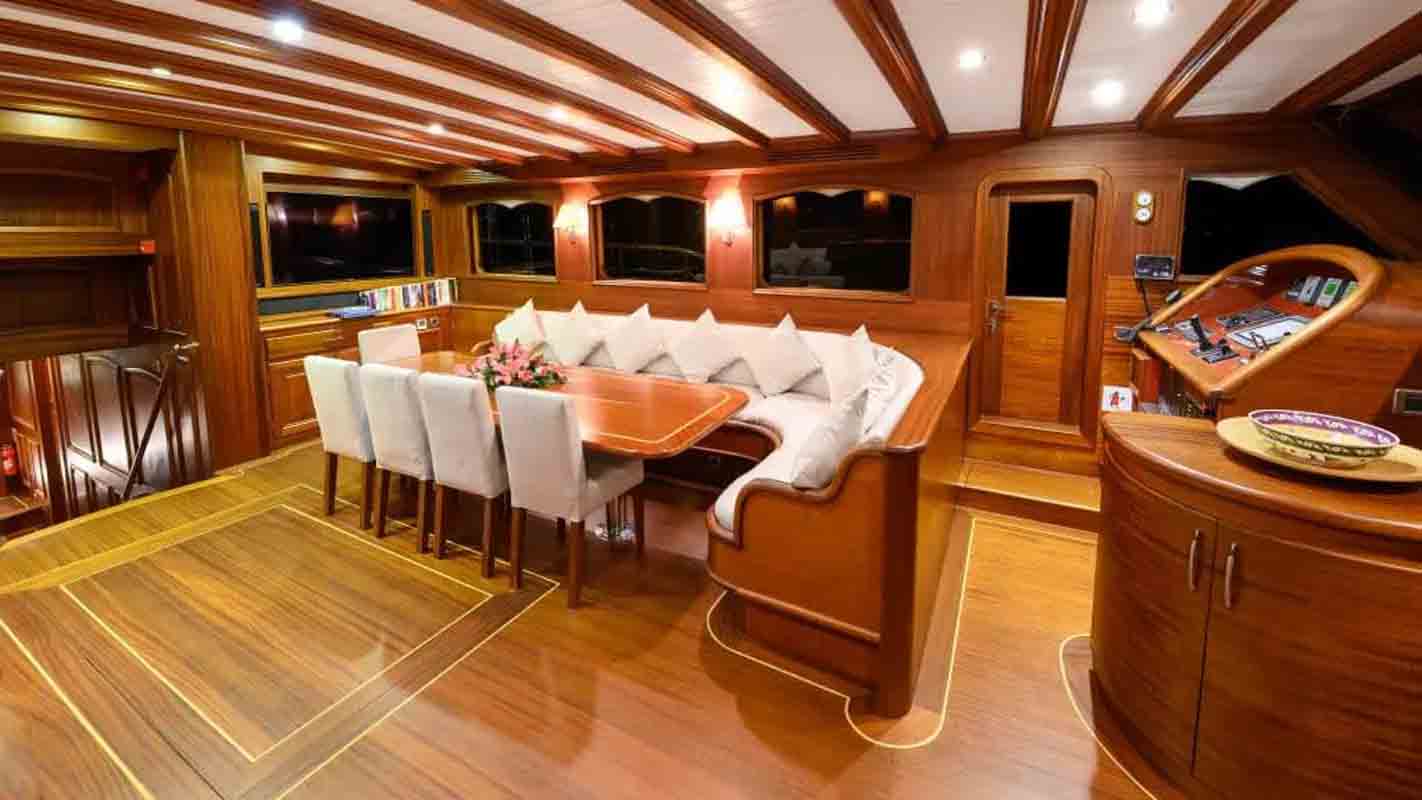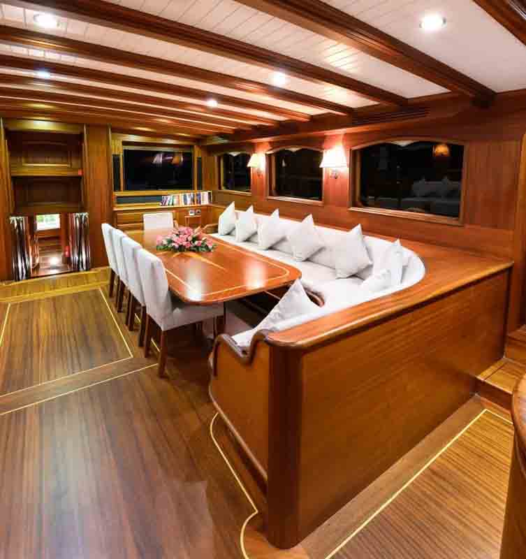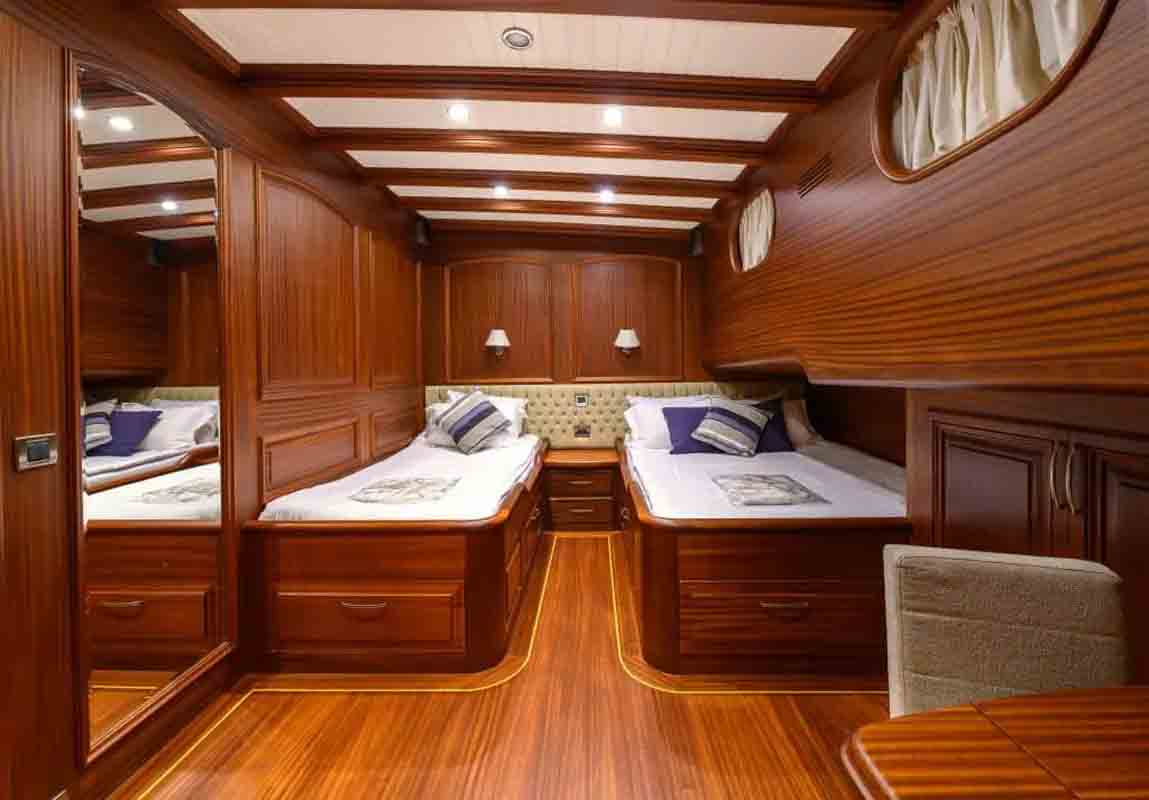 The 36 MT / 118'1" FT High Deluxe Yacht Caner 4 comfortably accommodates 12 guests with her 2 Master, 2 Double, 2 Twin Cabins and is operated by 6 experienced and dedicated crew. Caner4 is available for charter in Turkey and Mediterranean in summer (May to October). Caner4 toys and tenders include Computer, Tv-Set, VCR, DVD-Player, FM-Radio– contact us to know the full list.
