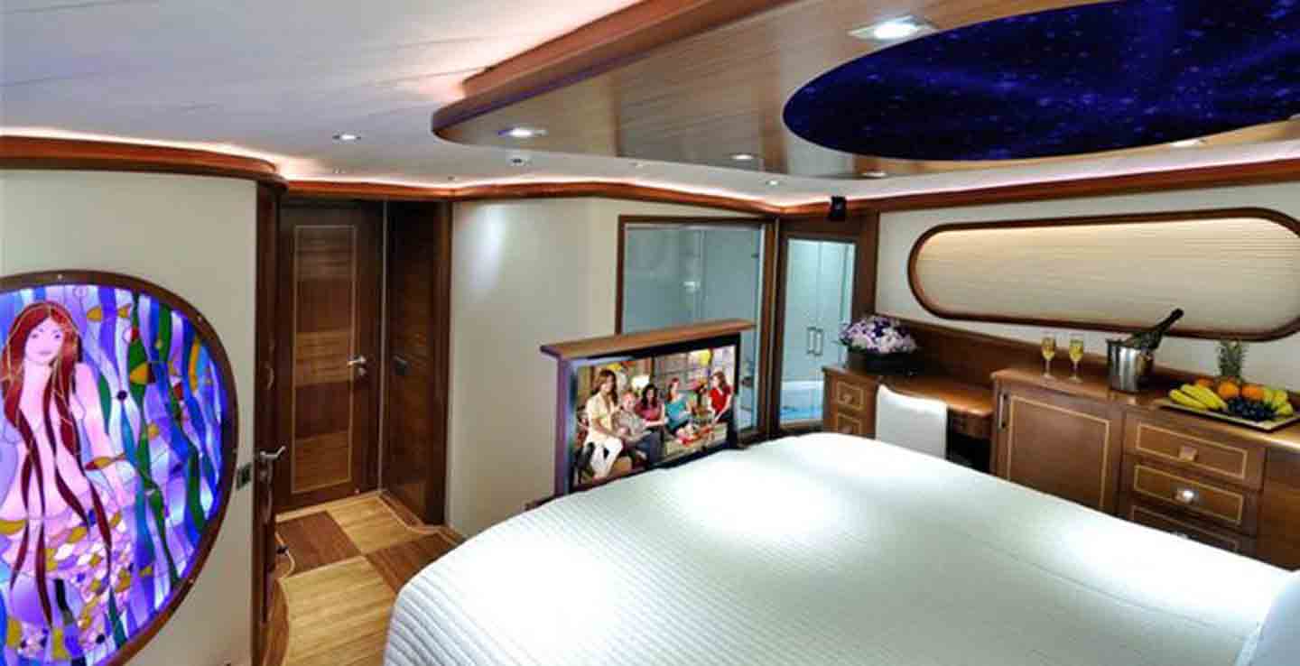 The 36 METERS High Deluxe Yacht Dolce Mare comfortably accommodates 12 guests with her 2 Master, 1 Triple, 3 Double Cabins and is operated by 6 experienced and dedicated crew (Captain, Chef, 3 Deckhands, Hostess). DolceMare is available for charter in Turkey and Mediterranean in summer (May to October). DolceMare toys and tenders include VHF, depth sounder, Radar, GPS, Compass, satellite communication equipment, All navigation Equipment– contact us to know the full list.